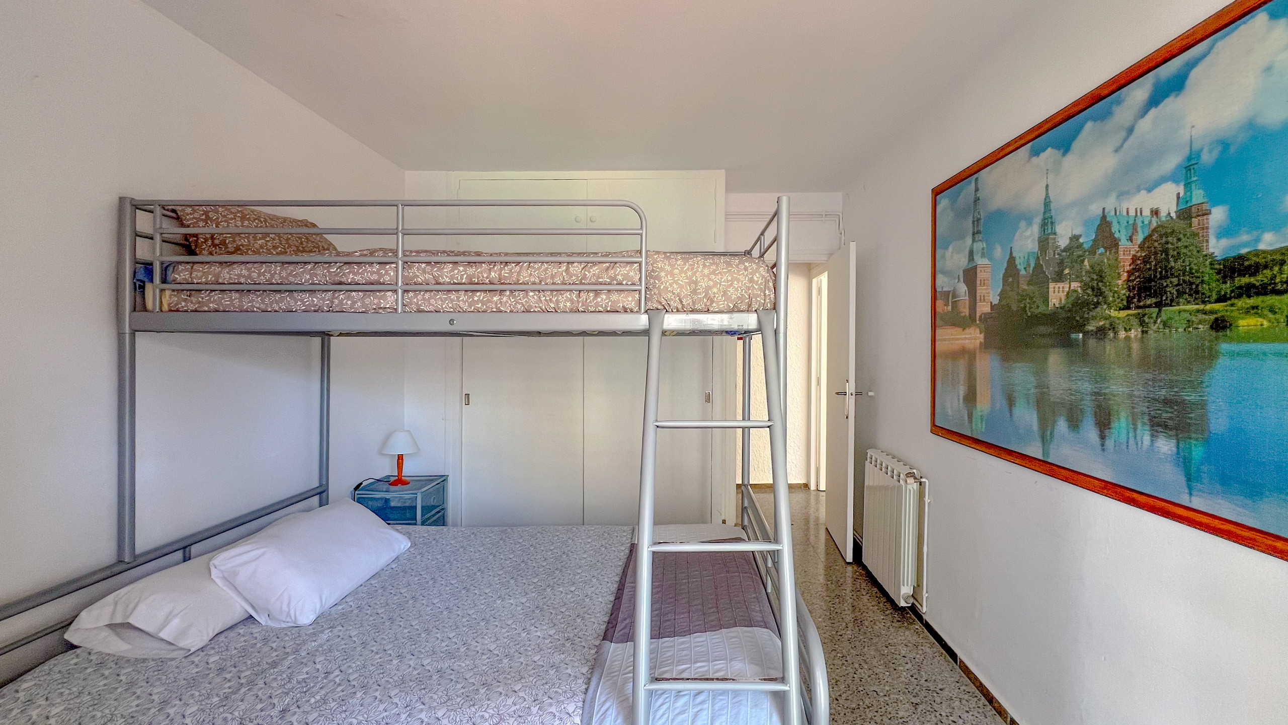 - chambre 1 : 1 lit superposé double. Le lit du bas est double (140 cm x 200 cm) et celui du haut est individuel.