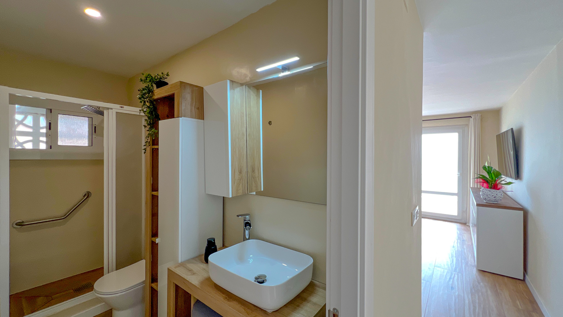 La salle de bain avec douche.